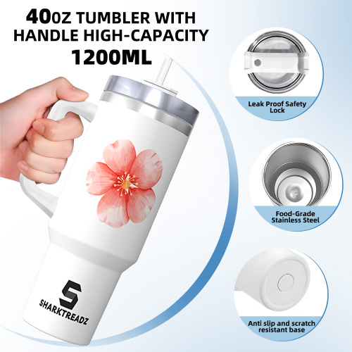 Floral Theme 40oz Stainless Steel Tumbler With Handle – Sakura