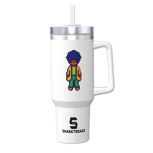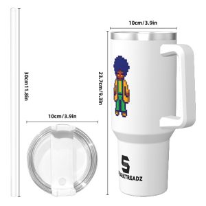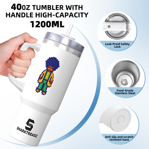 This 40oz stainless steel thermos not only has excellent insulation function, but also brings a combination of retro and modern with its unique pixel art style pattern. Bold pixel patterns are decorated on both sides of the bottle, adding a personalized touch to your daily life. The simple white base and comfortable handle design make this thermos easy to carry and full of design, especially suitable for users who love creativity and technology.